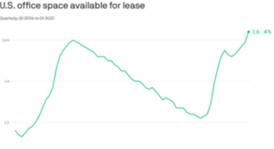 One of the results of this transition is obvious to anyone who works or spends any time in a large office building. The majority of commercial properties throughout the country have an unprecedented amount of vacant space that is no longer needed to house on site workers. You might be thinking, “This was all brought up in 2021 and is old news, so what’s the big deal?” The problem is that commercial leases are much longer than the typical residential lease. The majority of commercial leases have terms of 7 – 10 years, so the vast majority of leases currently in force are pre-Covid leases. This means that most of the vacant space in commercial buildings is still under lease and the property owners have continued to receive rent payments since defaulting on a lease ruins a company’s credit rating and the resulting increase in borrowing costs far exceeds the cost of rent. But one thing is certain, when the lease expires, companies will cancel leases for space they have vacated.
